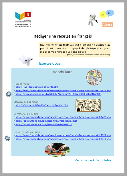 Cette fiche d'activités pour apprenants FLE propose de découvrir le vocabulaire et la syntaxe pour rédiger une recette de cuisine...