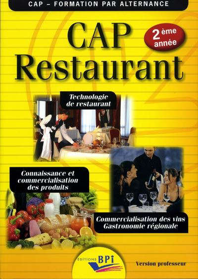 CAP restaurant : 2ème année [Livre du professeur] technologie de restaurant, connaissance et commercialisation des produits, commercialisation des vins, gastronomie régionale